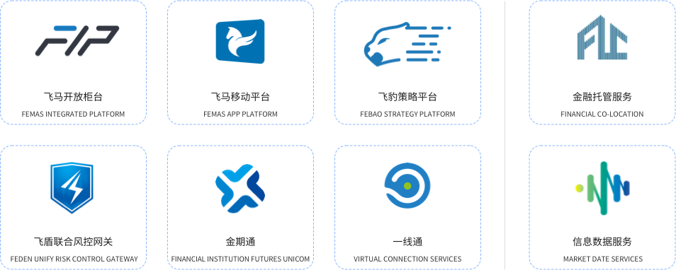 以便利機構(gòu)客戶參與金融期貨市場、助力金融期貨市場發(fā)揮風險管理功能為目標,具體包括:飛豹做市商平臺、飛馬證券版、飛盾風控網(wǎng)關(guān)等。